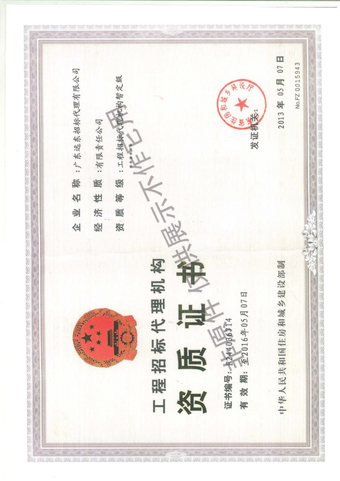 廣東省建設(shè)行業(yè)資信證書暫定級