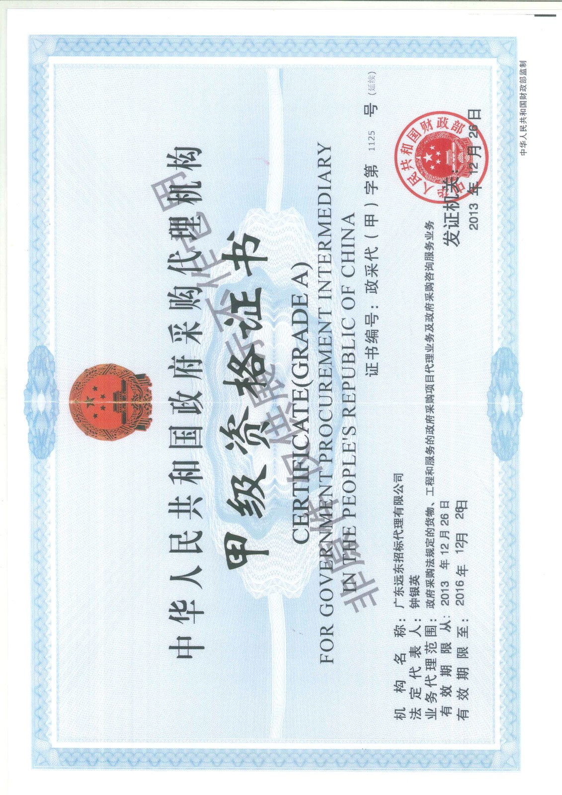 政府采購代理甲級資質(zhì)